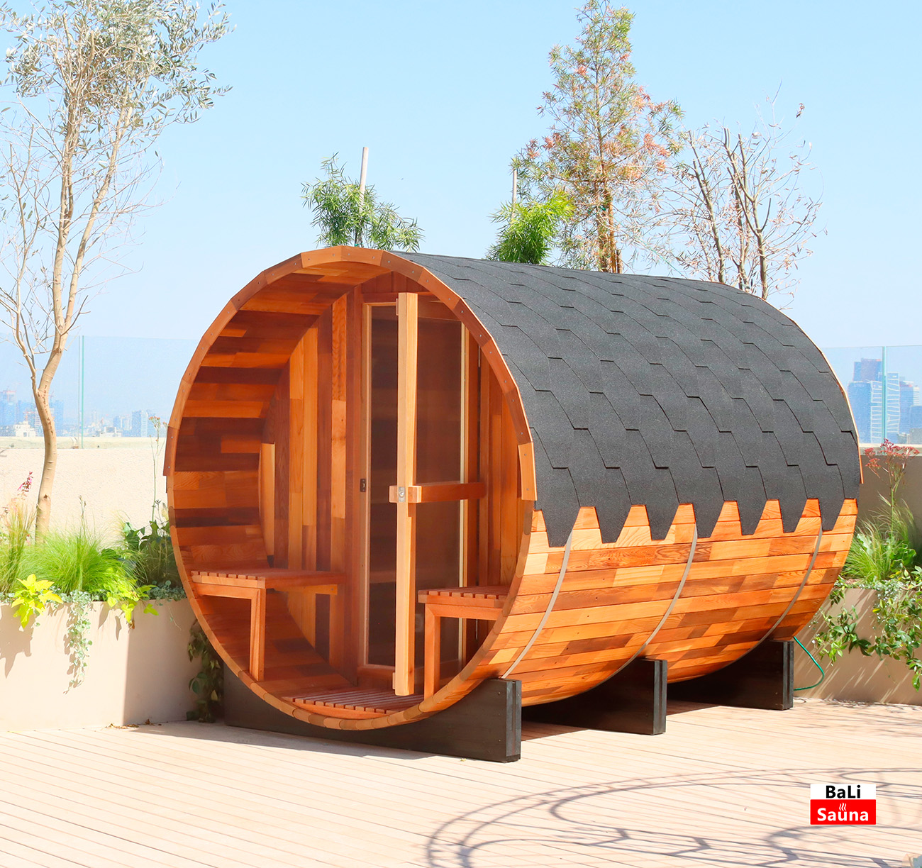 סאונה חבית מעץ ארז אדום – 1.80 מ' קוטר / 2.40 מ' עומק