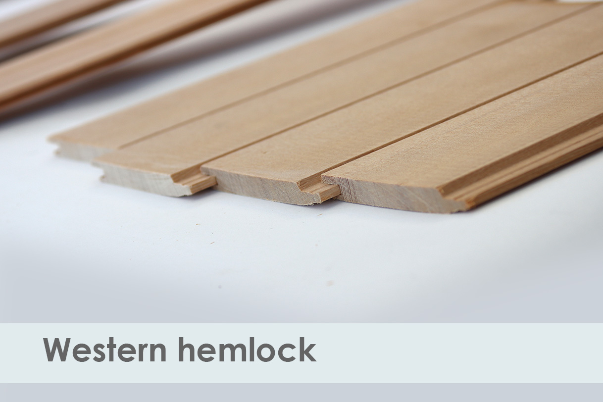 לוחות עץ ההמלוק המערבי מותאמים לשימוש בציפוי קירות ותקרה בסאונות.