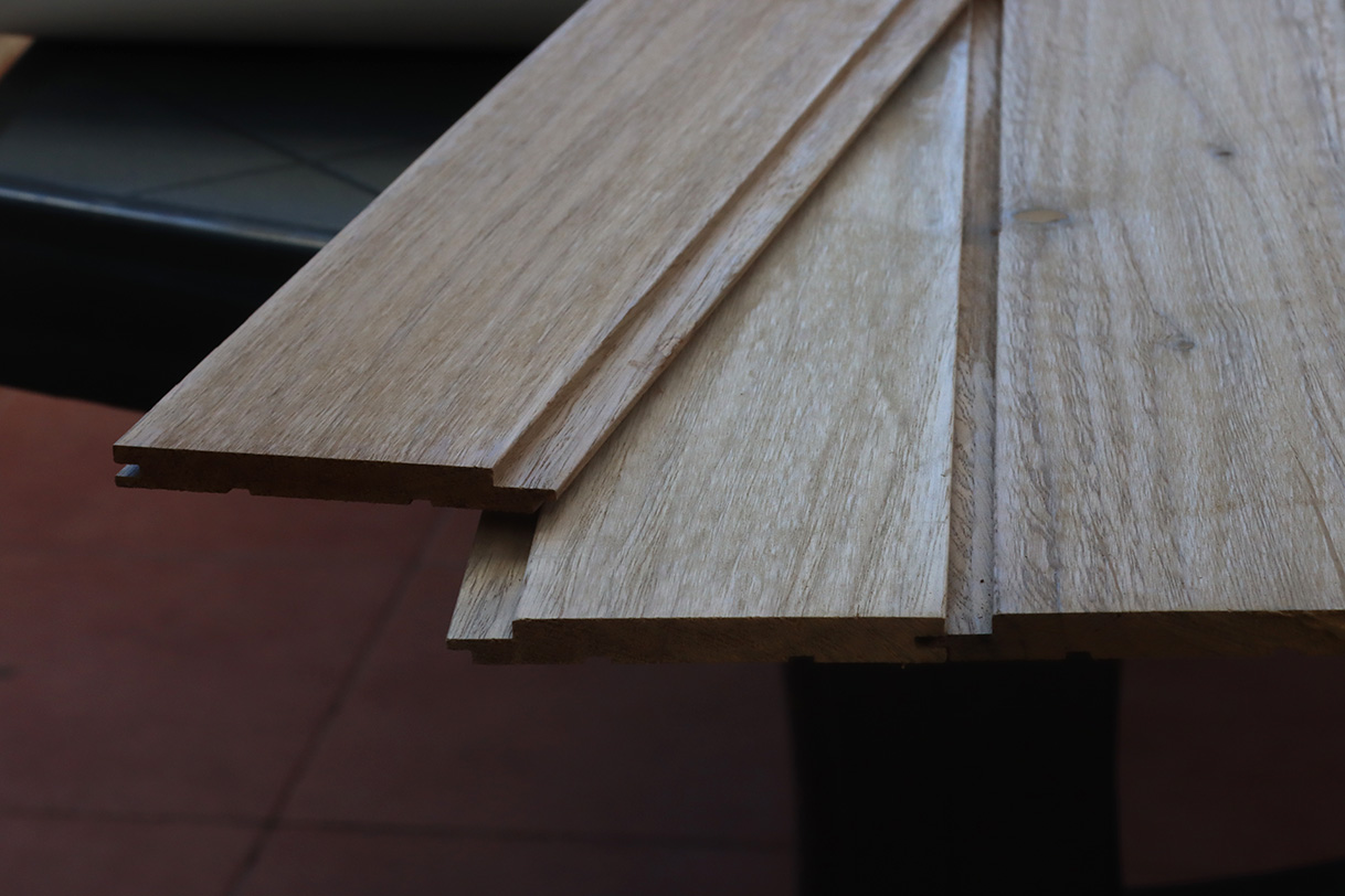 עץ האלון הוא חומר גלם יוקרתי ופופולרי לחיפוי קירות ותקרות, במיוחד בסאונות. הלוחות מיוצרים בעיצוב מיוחד הכולל מערכת חיבור מסוג "זכר ונקבה", שמבטיחה התקנה קלה, מהירה ומדויקת. בזכות שיטת חיבור זו, תהליך העבודה הופך לפשוט ויעיל, ומתקבל חיפוי אחיד ועמיד לאורך זמן.