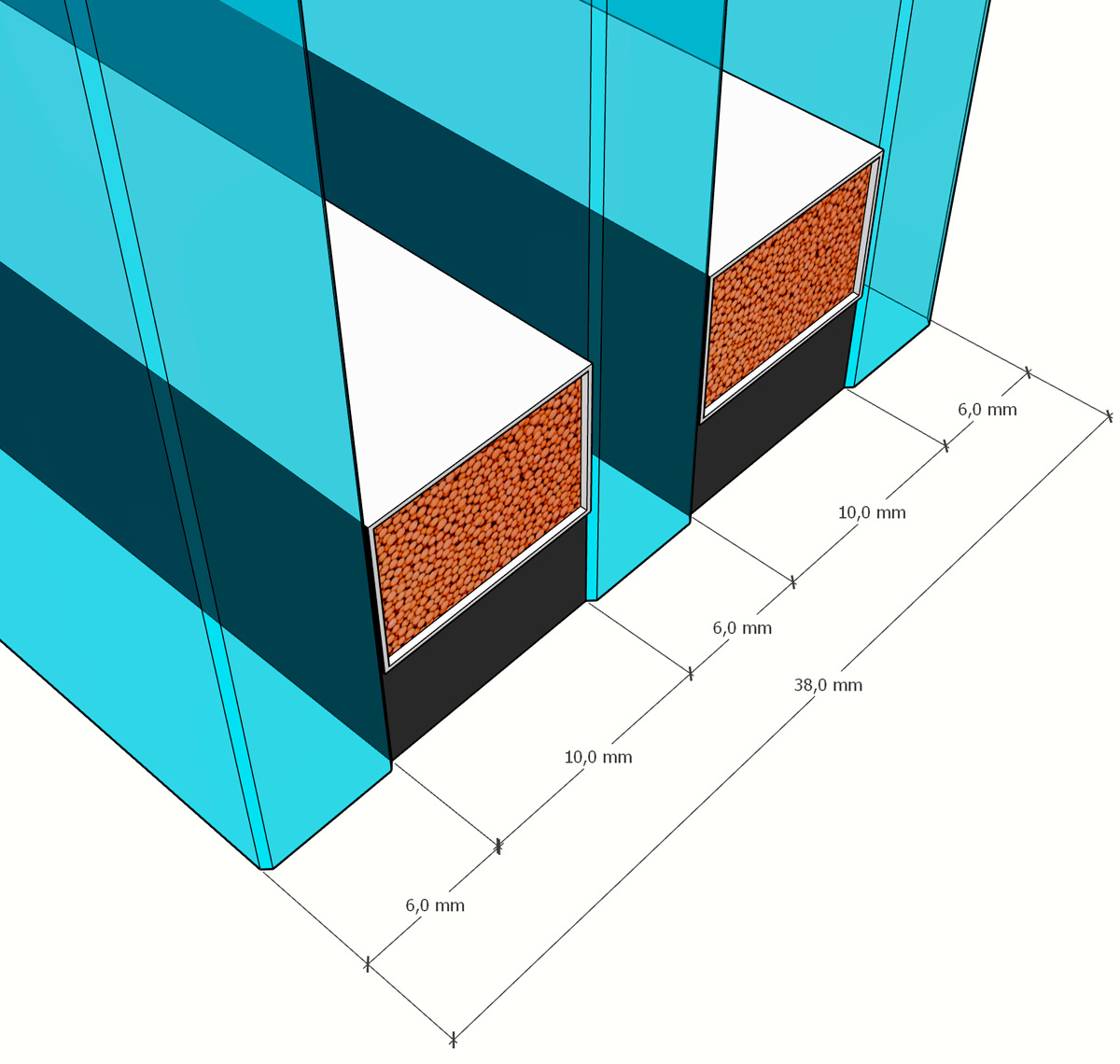 החלון מיוצר בשלוש שכבות זכוכית מחוסמת, עם ספייסרים ברוחב 10 מ"מ בין השכבות, ומספק אטימה מלאה ללחות וחום. אידיאלי לסאונות בנויות בהתאמה אישית, חדרי אדים, או אזורי ספא.
